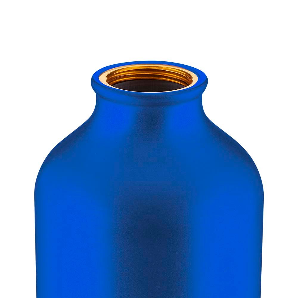 Garrafa de 550 ml em alumínio reciclado com acabamento mate, exceto na cor branca, tampa rosqueável em bambu e mosquetão na tampa.
