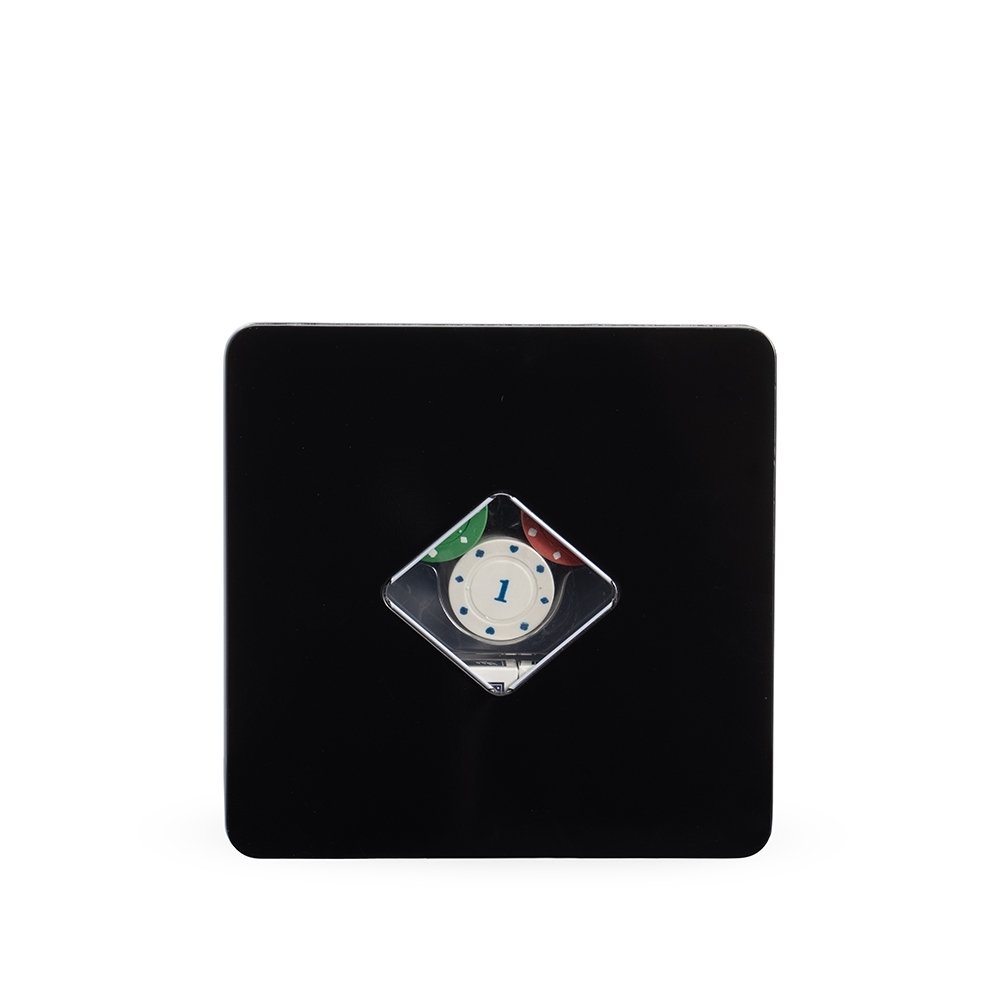 Descrição: Kit poker formado por dois baralhos completos, com 54 cartas cada, além de uma ficha de dealer e cerca de 100 fichas coloridas, distribuídas em quatro cores com 25 unidades cada. Acompanha um estojo metálico para guardar os itens do conjunto.
