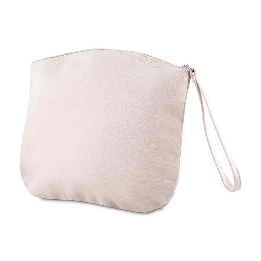Necessaire confeccionada em algodão reciclado de 340 g/m², conta com alça de mão em algodão que facilita o transporte, sendo prática e resistente para organização de objetos pessoais.